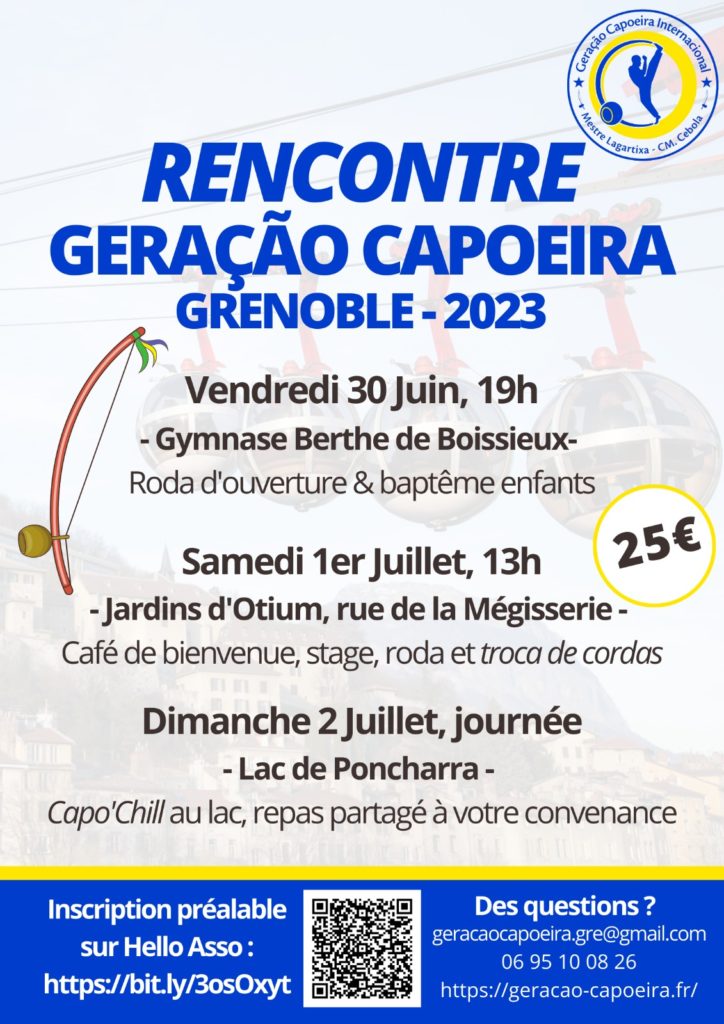 Cours de chant de samba Date : 22 janvier 2024Heure : 19:00 - 20:00Lieu: Collectif Voisin, 11 place Charpin - GrenobleAtelier de chant de Samba animé par Maria Duringer. Tarif : 12€ Pour plus d’informations contactez nous par mail : geracaocapoeira.gre@gmail.com